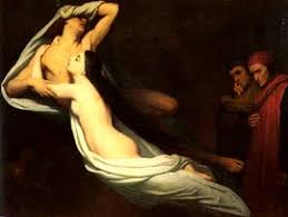 We discussed the story of Francesca and Paolo, two lovers cast into hell for their adulterous lust. In the story, Francesca is married to one of two brothers, Gianciotto. One night she and Gianciotto's brother, Paolo are reading the famous story of Lancelot and Guinevere, when, they are consumed by the desire of each other and share a kiss. Later, Gianciotto discovers the pair together and murders them both.